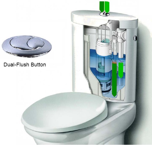 All cistern fittings are supplied with a dual flushing button; the smaller button flushes 3 litres and the larger one flushes 6 litres. This helps to even reach a higher water saving per year.